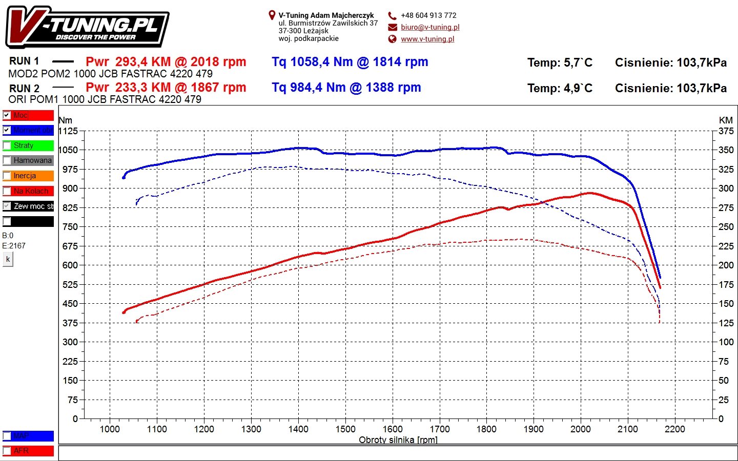 Przyrost mocy jaki uzyskaliśmy to 60KM oraz 74Nm