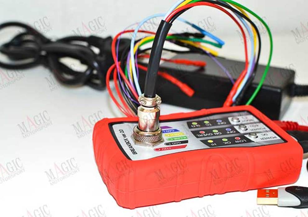 Breakbox jest narzędziem diagnostycznym zaprojektowanym do współpracy z narzędziem programującym oraz ECU. Zapewnia zasilanie i zapobiega zwarciom lub przeciążeniom dzięki automatycznemu systemowi blokowemu, który analizuje połączenia elektryczne i reaguje, zanim urządzenie lub ECU może zostać uszkodzone.